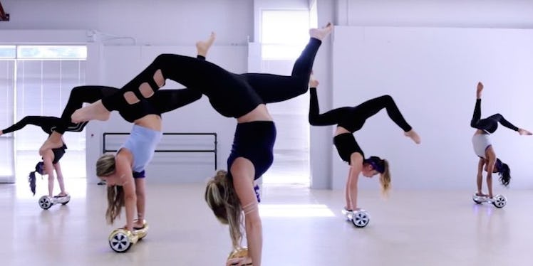 But this isn't just any dance performance. These women manage to incorporate a fleet of hoverboards into their act, taking the whole gig to another level. From handstands to flips, these ladies pull off every stunt.