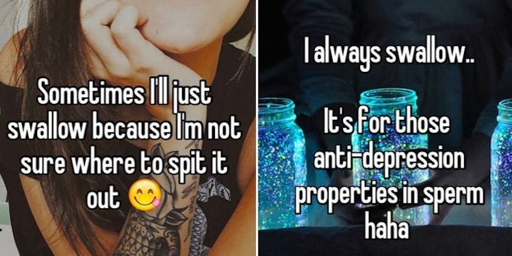 Whisper, that app that lets you spill the beans via anonymous messages, just asked a bunch of ladies to give them the deets on why they prefer to spit or swallow after giving a BJ.