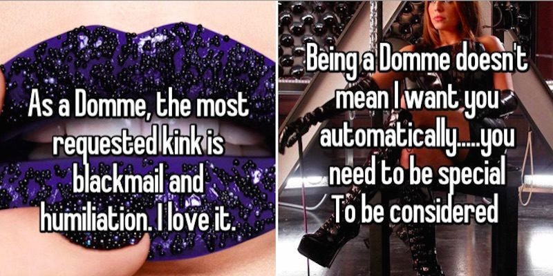 That's right. Whisper, the app that lets you reveal all of your sexy secrets through anonymous messages, recently asked a bunch of people to confess what it's really like to be a domme.