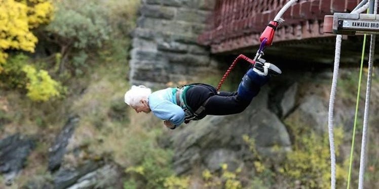 According to Mashable, she first started her bungee jumping career at age 84 and attempting the stunt again at age 91 was just for good measure. But why would she start doing these things so late in her life?