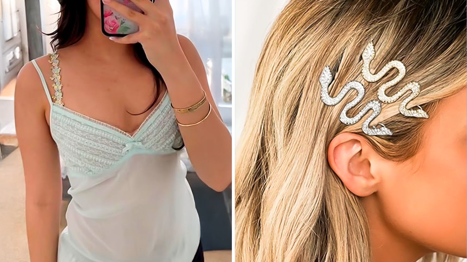 If your outfit feels a little too basic, statement hair jewelry can change the entire vibe in seconds. These rhinestone snake-shaped pins add shine, texture, and a hint of boldness without requiring complicated hairstyling. Slide them into loose waves, braids, or a quick updo for an eye-catching detail that makes even simple outfits look edgier.