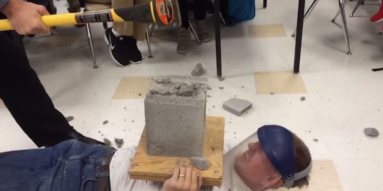 It's either that or the nerve damage was so severe the guy lost the ability to feel pain, but regardless of the long-term damage, you have to give him credit for letting the teacher take another swing.