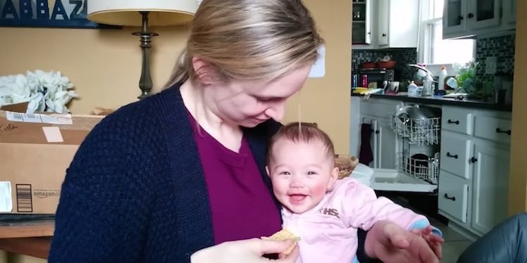 A YouTube video posted by Timothy W. shows his 4-month-old daughter giggling every time her mother bites into a chip.