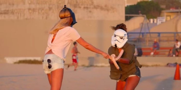 In celebration of the impending release of “Star Wars: Episode VII — The Force Awakens”, the guys at World Star Hip Hop staged a ridiculous “Star Wars” themed prank: They convinced people on the beach to don blindfolds and have a lightsaber battle.