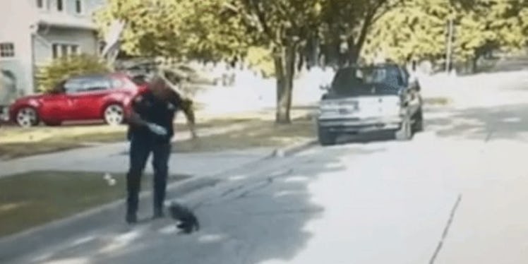 The cop, who saved other small animals in the past, got out of his vehicle and snatched the yogurt container from the animal's face.