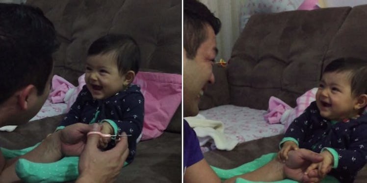 Smartest Baby Ever Pranks Her Dad While He Tries To Cut Her Fingernails (Video)