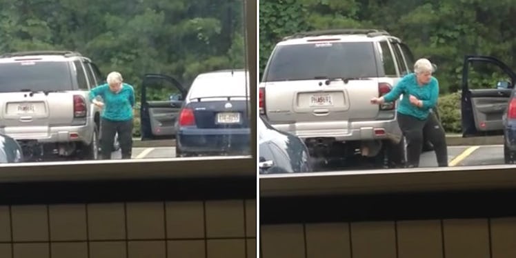 Well, one lady decided she absolutely needed to cut a rug in the middle of a parking lot, and her dance moves are all of us trying to dance on a Saturday night and being awkward AF.