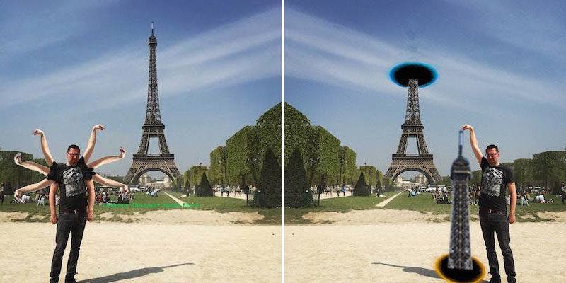 If a man is Photoshopped out of France, but there is no one around to laugh, did he ever really Eiffel?
