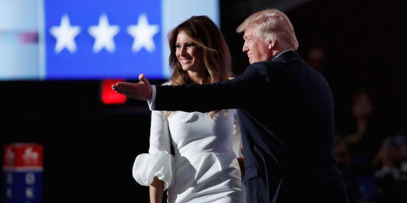 But apparently, some people don't care at all about plagiarism because reports say the dress Melania Trump was wearing sold out an hour after the speech was given, and is continuing to fly off the shelves even in the other colors (jet black, hot pink, probably refugee blood red).