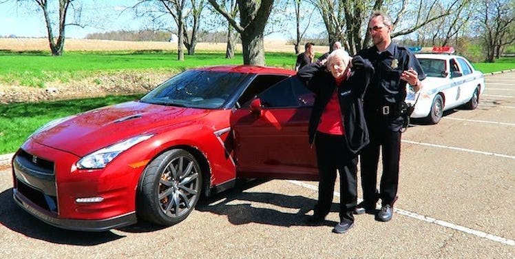 However, one unlucky grandmother was treated to a joy ride in a fast car that led to her getting "arrested" by a couple of fake cops.