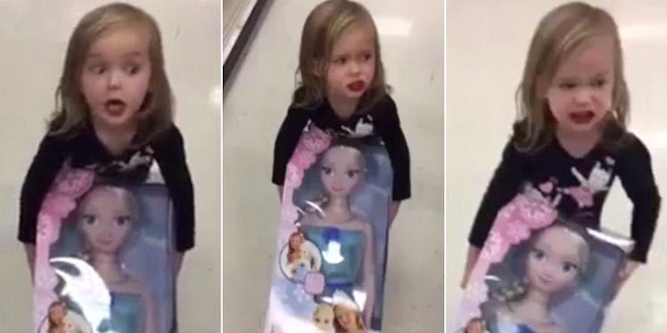 While shopping with her dad, the pint-sized princess spotted an oversized Elsa doll and decided she had to have it.