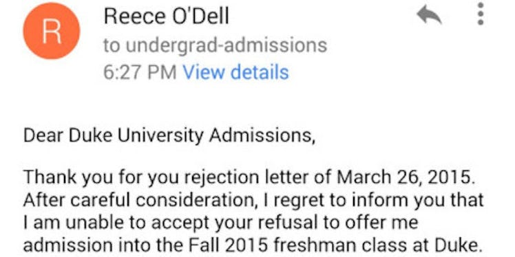 Girl Rejected From Duke Sends The School A Rejection Letter Of Her Own (Photos)
