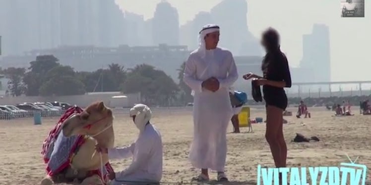On a recent visit to Dubai, he decided to pull a similar stunt with one slight change -- instead of a luxury car that costs hundreds of thousands of dollars, he tried to seduce girls with a camel.