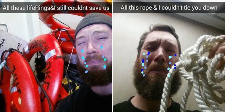 He then uploaded a series of breakup-themed Snapchats featuring terrible wordplay and (almost as terrible) cartoon tears.