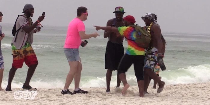 I'm unsure whether the host of this video is actually gay or if he based his character off how he thinks a drunk George W Bush would act at a barbecue, but regardless, these guys did not seem to enjoy his approaches.