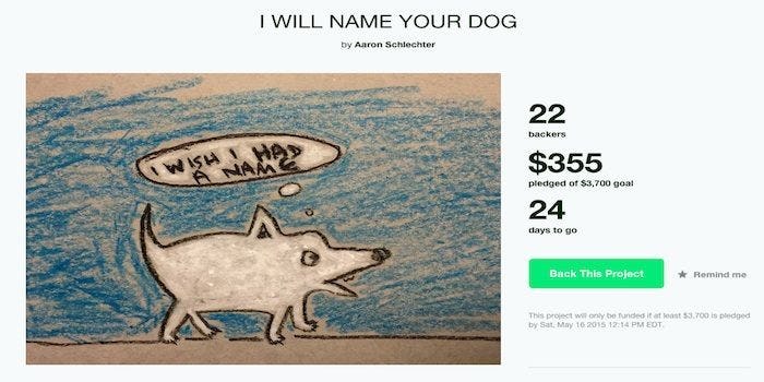 Aaron Schlechter decided he wanted to help people name their dogs (something he claimed he's excellent at), so he started a Kickstarter campaign. His funding goal was $3,700.
