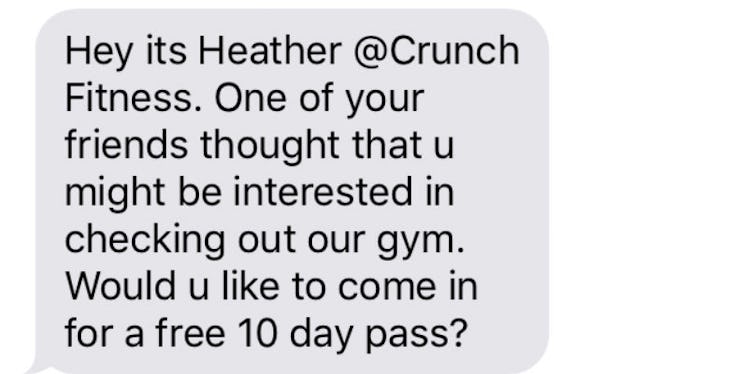 One time, I emailed a gym for a friend to ask about membership rates and amenities. I'm not sure why she couldn't email them, but now I think it was actually just a clever ruse to make me go insane.