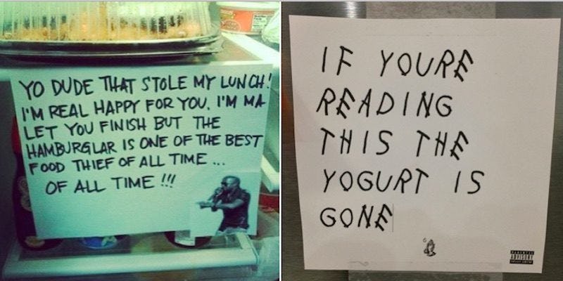 But there are some people out there who make a habit out of helping themselves to their roomie's groceries on the reg or, even worse, swiping their co-worker's snacks from the break room fridge.