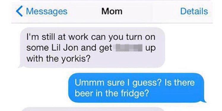 An Imgur user tweaked his mother's phone settings so whenever she asked him to “feed the dogs,” a different, and hilarious, message would be received.
