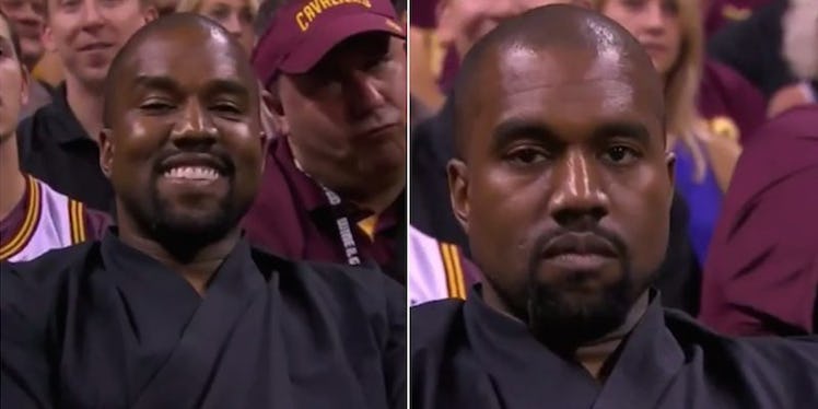 Kanye was in attendance at last night's NBA Finals game in Cleveland, and he slipped up yet again and accidentally showed the entire world he's capable of expressing emotions other than bitterness and apathy.