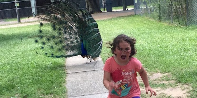 Little Girl Running From A Peacock Is All Of Us When Adulting's Hard AF