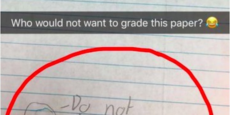 A teacher's colleague posted a hilarious screenshot of a student's test to Snapchat.