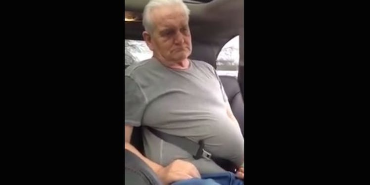Old Man With Impressively Large Belly Gets Stuck In His Seat Belt (Video)