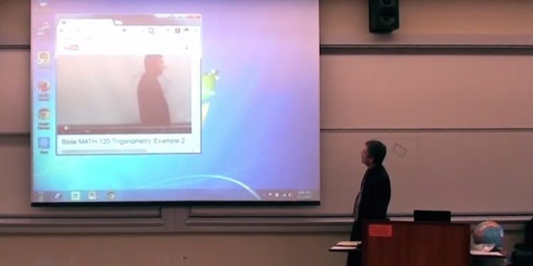 Math is obviously the most boring subject ever, and lectures are the most boring way to learn. So when this teacher suddenly starts interacting with his virtual double, these kids understandably lose it.