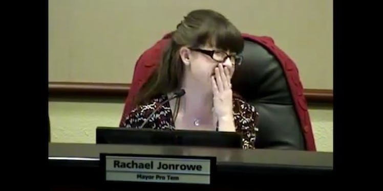 During a recent city council meeting, Dale Ross, the mayor of Georgetown, Texas, took a bathroom break and did the same thing.