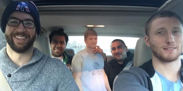 Anyway, unable to hang out together without at least a depiction of their dear friend Kevin, these dudes got a cardboard cutout of Kevin wearing a tank top and brought him along.