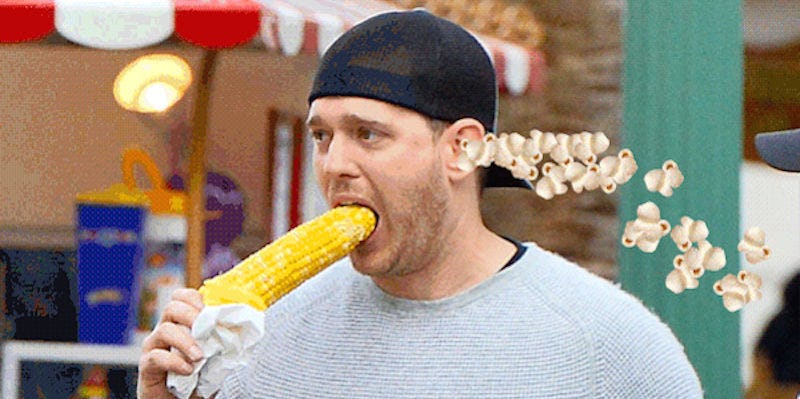I don't want to imply Michael Bublé took advantage of California's medicinal marijuana program before hitting Disneyland earlier this week, but I certainly wouldn't be surprised if he was happier than normal in The Happiest Place On Earth based on how he tried to consume a piece of corn he purchased while there.