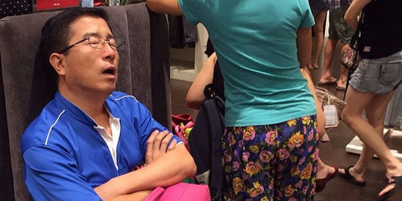 The Miserable Men Instagram documents these moments of soul-crushing boredom. Whenever you are feeling like there is nothing good on Netflix to watch, just scroll through this account to remind yourself how lucky you are not to be in a mall with Sheryl trying on jeans.