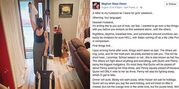Before Meghan Maza Oeser, a photographer from Illinois, left for a weekend away with her friends, she wrote her husband a long and hilarious letter, detailing all the domestic trials and tribulations he would take on in her absence.
