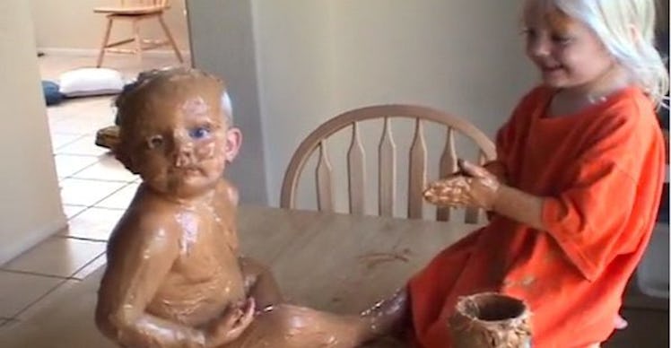 Mom Walks In To Find Daughter Covered Baby Brother With Peanut Butter (Video)