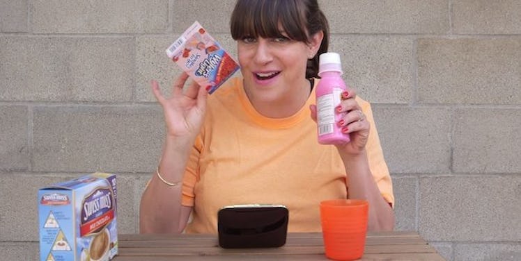 In the video, Greenberg attempts to give herself a makeover with commissary items, and it’s awesome.