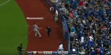 That's exactly what happened to one policewoman working a baseball game between the Toronto Blue Jays and the Houston Astros on Saturday -- but she took the hit in the most adorable way, compared to some of us who would have shut down.