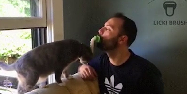 The Licki Brush, a new product for cat owners (and winner of the most pornographically named object since the "button"), is a big, weird, fake cat tongue, which affords a loving human the ability to lick his or her cat as if it is a cat-baby.
