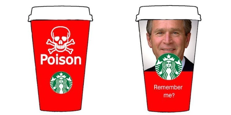 If somehow you haven't been on the Internet this week, let me explain: Starbucks, which usually has snowflakes and trees and stuff on its holiday-season cups, decided this year it would just make them red and green (you know, Christmas colors).
