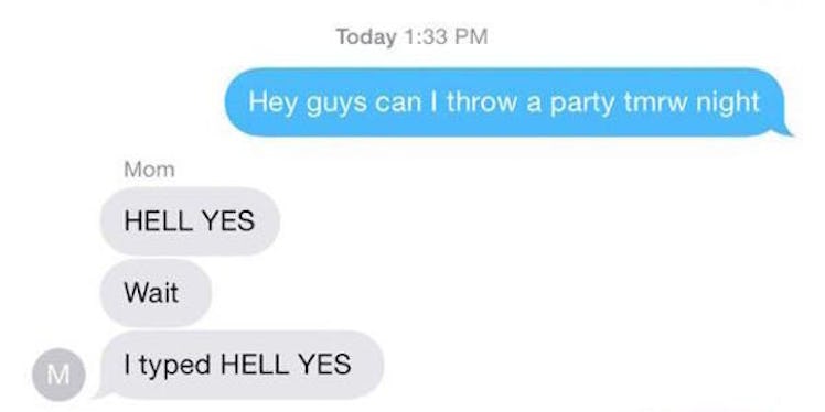 He brilliantly tweaked the settings in his parents' phones, so that when they typed the word “no,” it would be autocorrected to something else entirely. For his mom, that "something" was the phrase “HELL YES,” and for his dad, it was “WHERE THE BITCHES AT.”