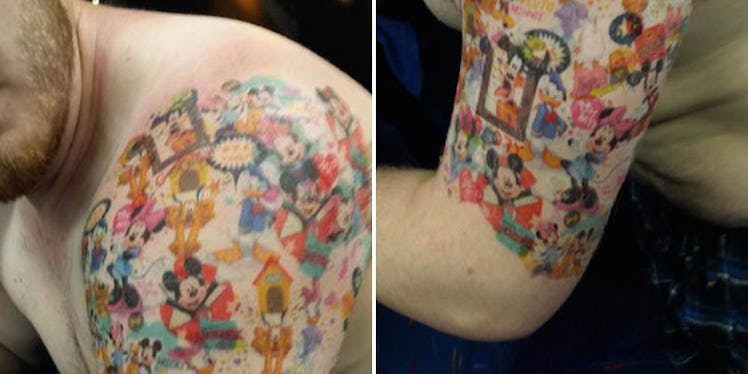 This guy was a little more forward-thinking than your Shrek genitalia-emblazoned cousin. He just put $40 dollars of Disney-themed temporary tattoos on his arm.