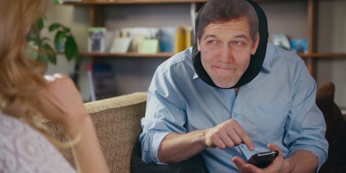 It's a hat with a picture of you on it, so you can maintain eye contact while staring into your phone.
