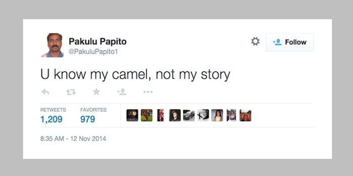 U know my camel, not my story — Pakulu Papito (@PakuluPapito1) November 12, 2014