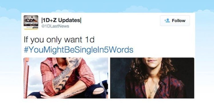 Using #YouMightBeSingleIn5Words, users are tweeting deal-breakers that cause crippling loneliness.