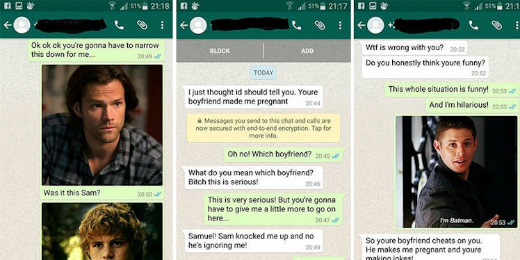I'll let the text exchange speak for itself, but let me just say this: This is an important lesson to always be sure to check who exactly you're texting when you're rage-explaining that the new life growing within you is someone's boyfriend's.