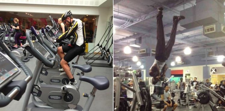 Note: While this article features pictures of people doing stupid things at the gym, it doesn't feature the people who took creepshots of other people at the gym and posted them on the Internet. Being that person is worse than anything pictured below.