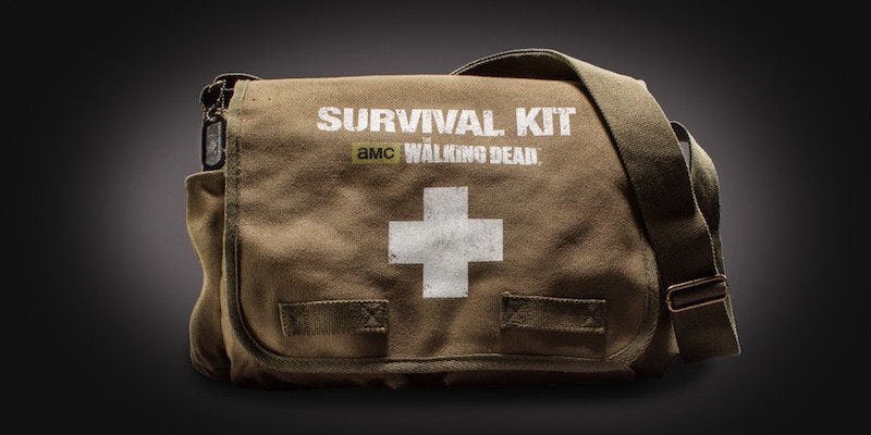 Now this is the real deal. You've got a blanket, some water, 2,400 calories of space food that never goes bad and bandaids to ineffectively cover Walker bites.