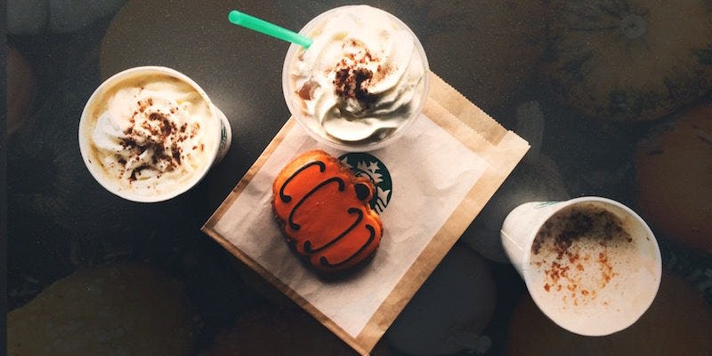 First off, I'm pretty sure pumpkin spice includes no actual pumpkin product. (If it does, great!) There's a reason we're drinking pumpkin spice and not, like, butternut squash spice.