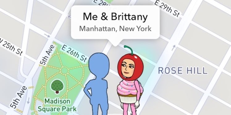 For reference, here's a screenshot of fellow Elite Daily editor Katie Corvino and I hanging out on the same street. She's the lively and beautiful cupcake Bitmoji, and I'm the dark and grim blue shadow (it's comforting).