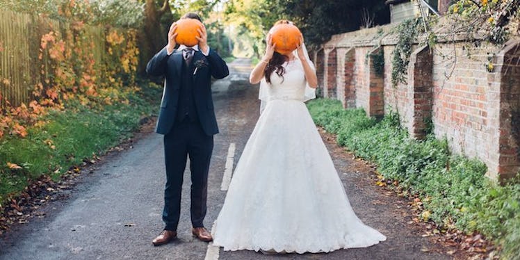 Once autumn makes its highly-anticipated comeback, we fall hard for the chill in the air, the colorful leaves falling to the ground, and that undeniable excitement that signals the start of Halloween season. TBH, what is there to hate about fall? Nothing, that's what. Fall is truly the most perfect time of year. It's beautiful, festive, and it comes with pumpkin spice-flavored everything. People seem to have an extra skip in their step, school isn't terrible (yet), and winter is still just a distant thought. That's why this season is the best time to jump on your Halloween wedding ideas.