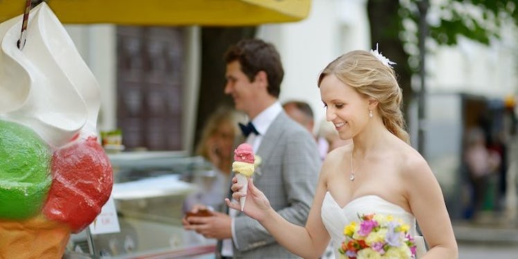 There's no shame at all in going ham with an ice cream cart at your wedding. If all else fails, there's ice cream, which can reverse any dampened mood. It's the little things, right?